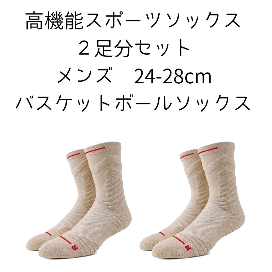 - 【ベージュ 2足分セット スポーツソックス】バスケットボール サッカー 高機能スポーツソックス 靴下 分厚くて丈夫 足への負担を軽減◎◎