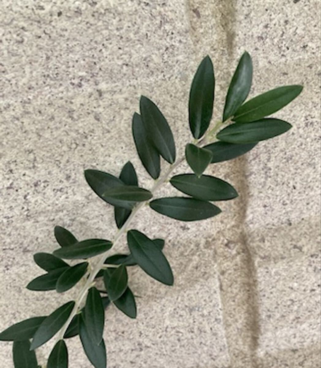 - 光沢のある緑色と銀色がかった葉 オリーブ フレッシュ カット枝