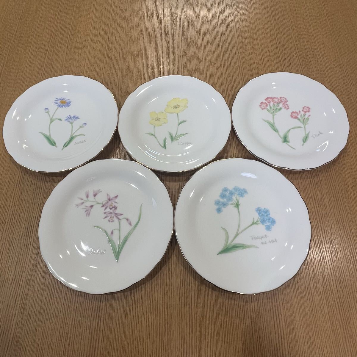 - たち吉 アダム&イブ ケーキ皿 花柄 5枚 セット 金縁 小皿 洋食器 プレート 食器
