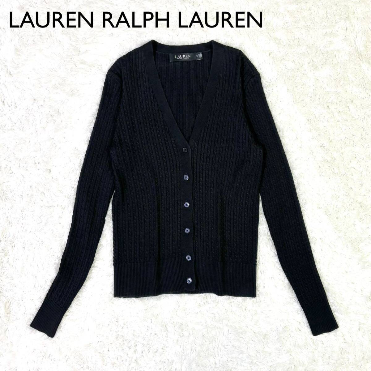 - ki19 現行 LAUREN RALPH LAUREN リブニットVネック カーディガン 長袖 ロゴボタン ローレンラルフローレン