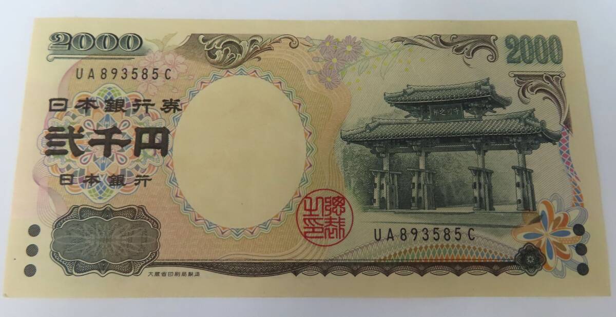 - #89384 美品 2000円札 ピン札 弐千円札 紫式部 守礼門 二千円札 沖縄 紙幣 新札 レア