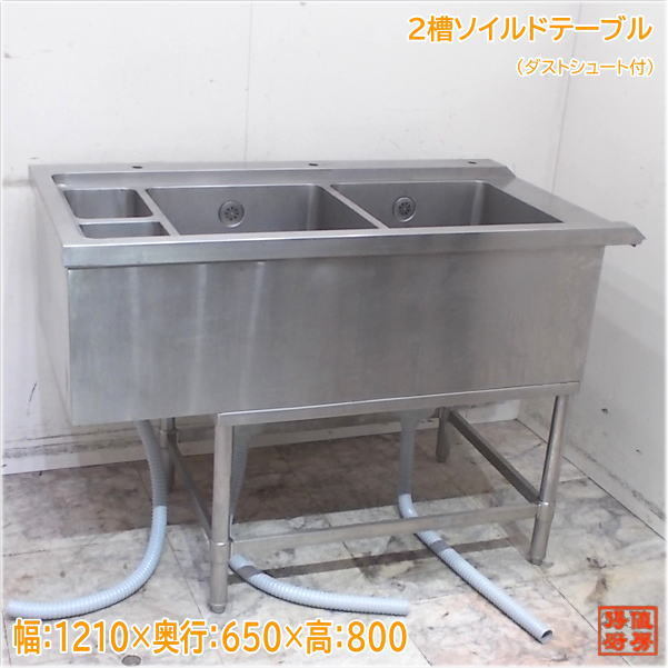 > ステンレス ダスト槽付2槽ソイルドテーブル 1210×650×800 ダストシュート付 中古厨房/25H0719Z