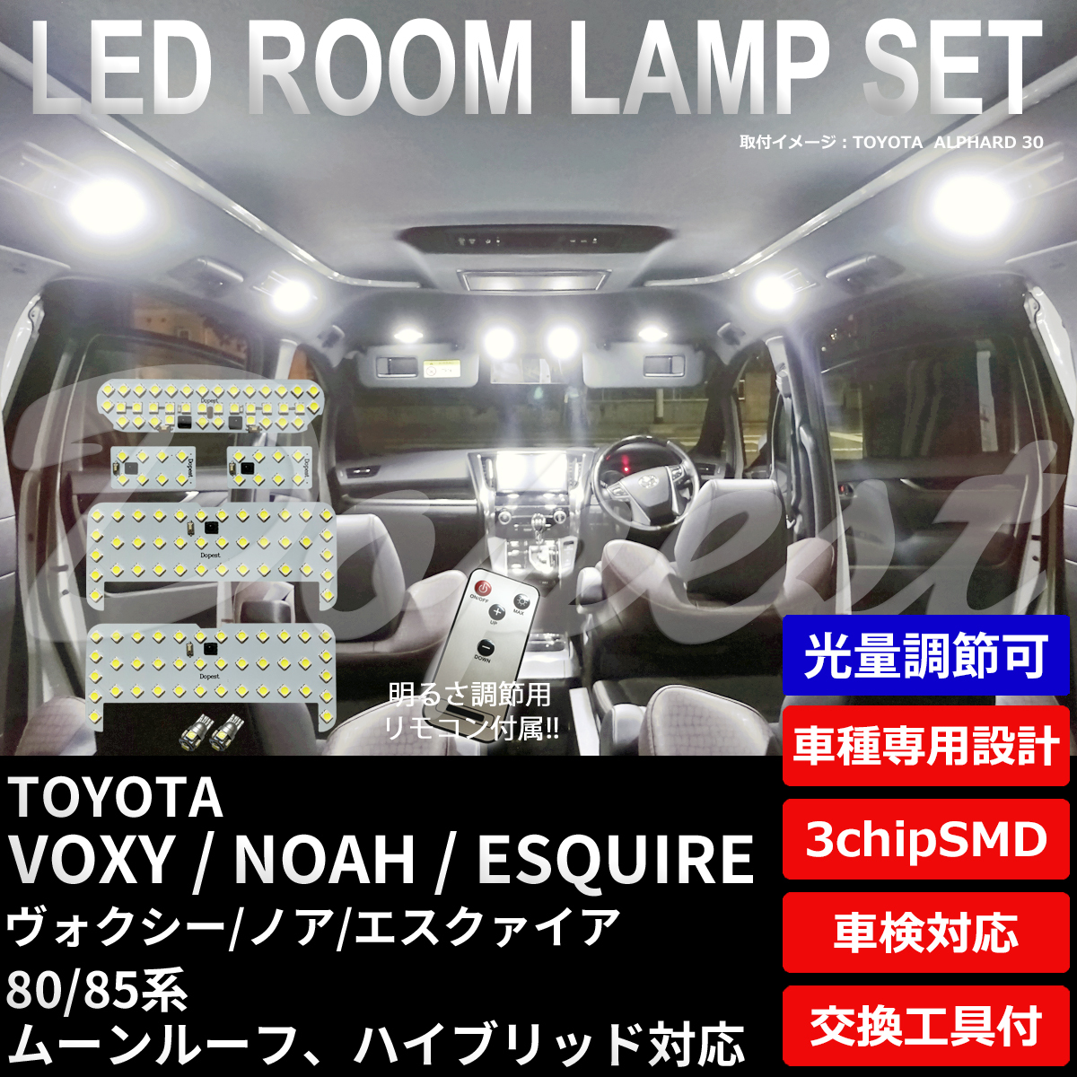 > ヴォクシー/ノア/エスクァイア LEDルームランプセット 80系 調光式 室内灯 6500K純白 専用設計 車検対応 車内灯