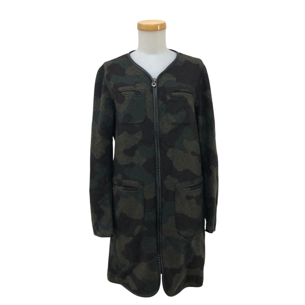 > 9Nm323-15 EVEX by KRIZIA エヴェックス バイ クリツィア カモフラ 迷彩柄 パイピング ジップアップ コート 上着 羽織 アウター カーキ 40
