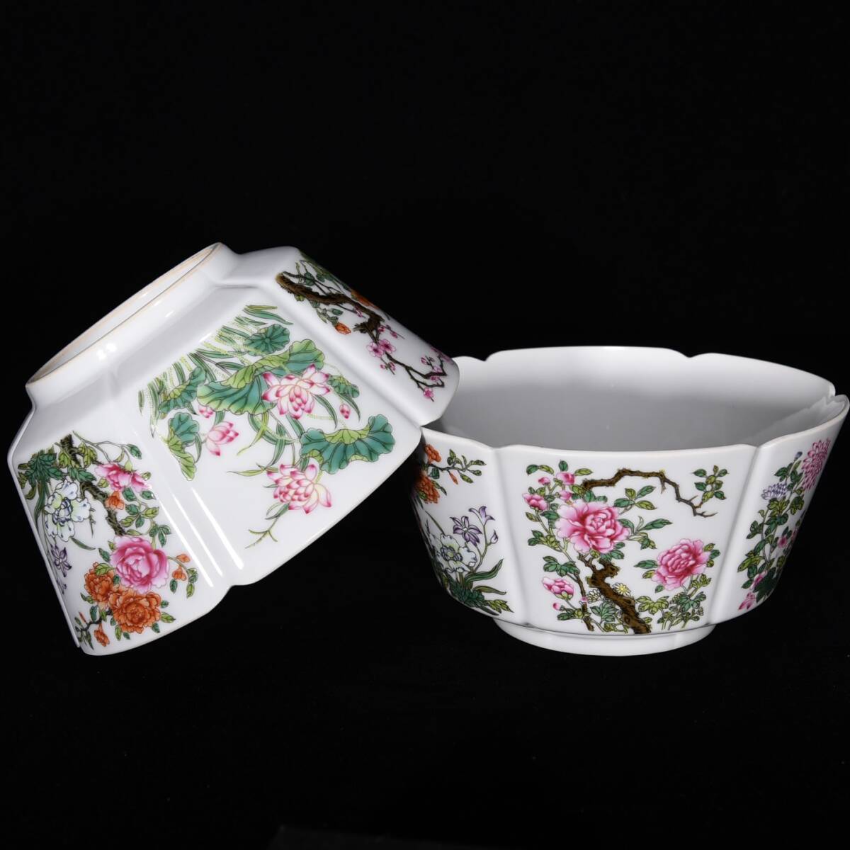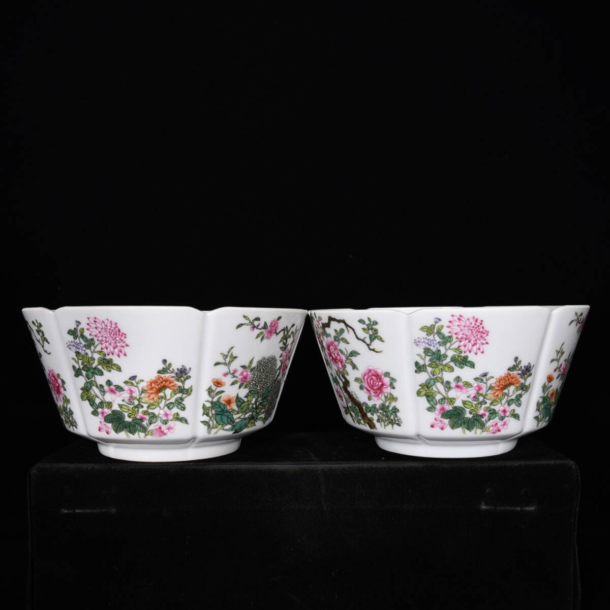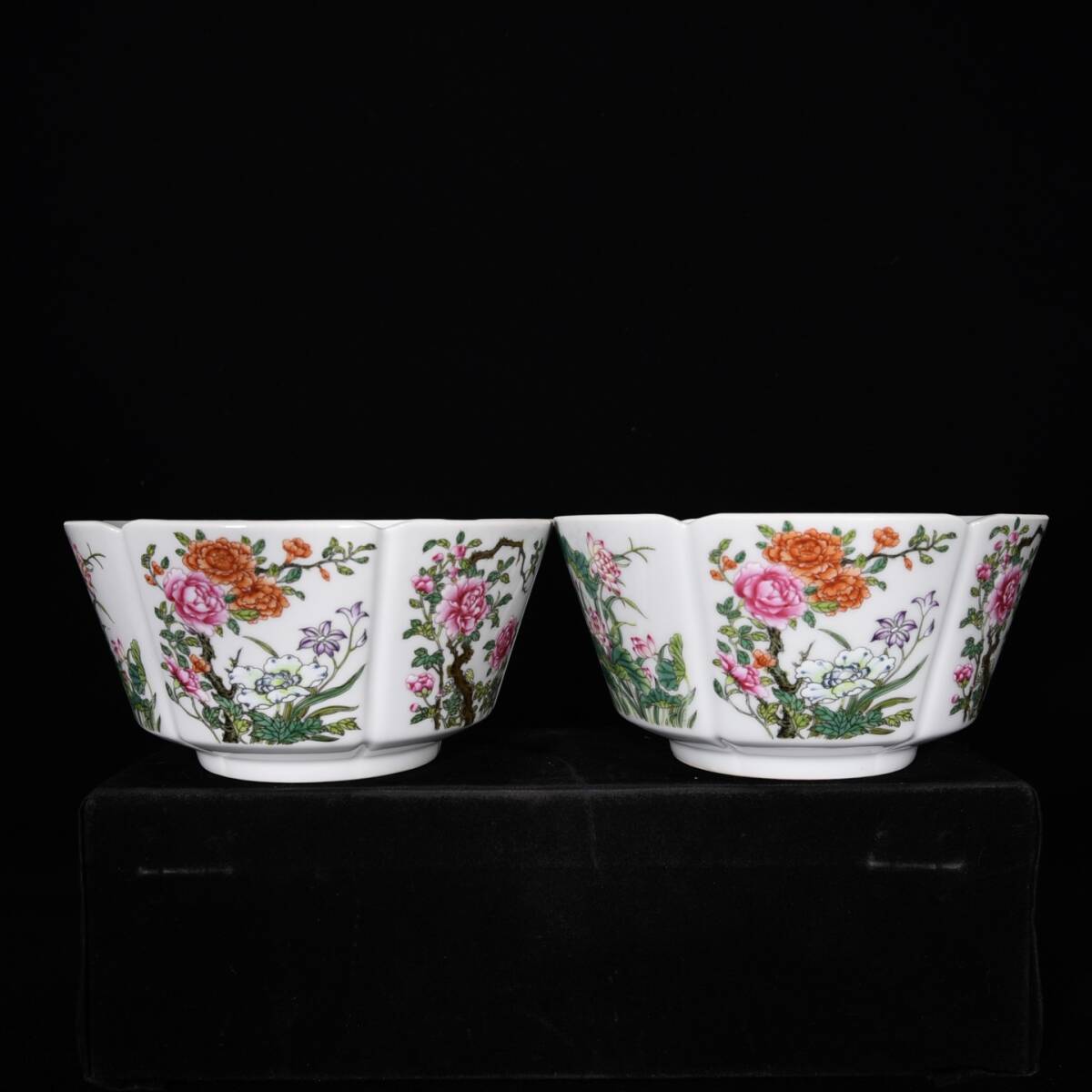 > ◆珍蔵◆中国古美術 大清乾隆年製款 粉彩 古陶磁 花卉紋六方碗 ―對 美品 細密細工造 置物 擺件 古賞物 骨董 時代物 A06