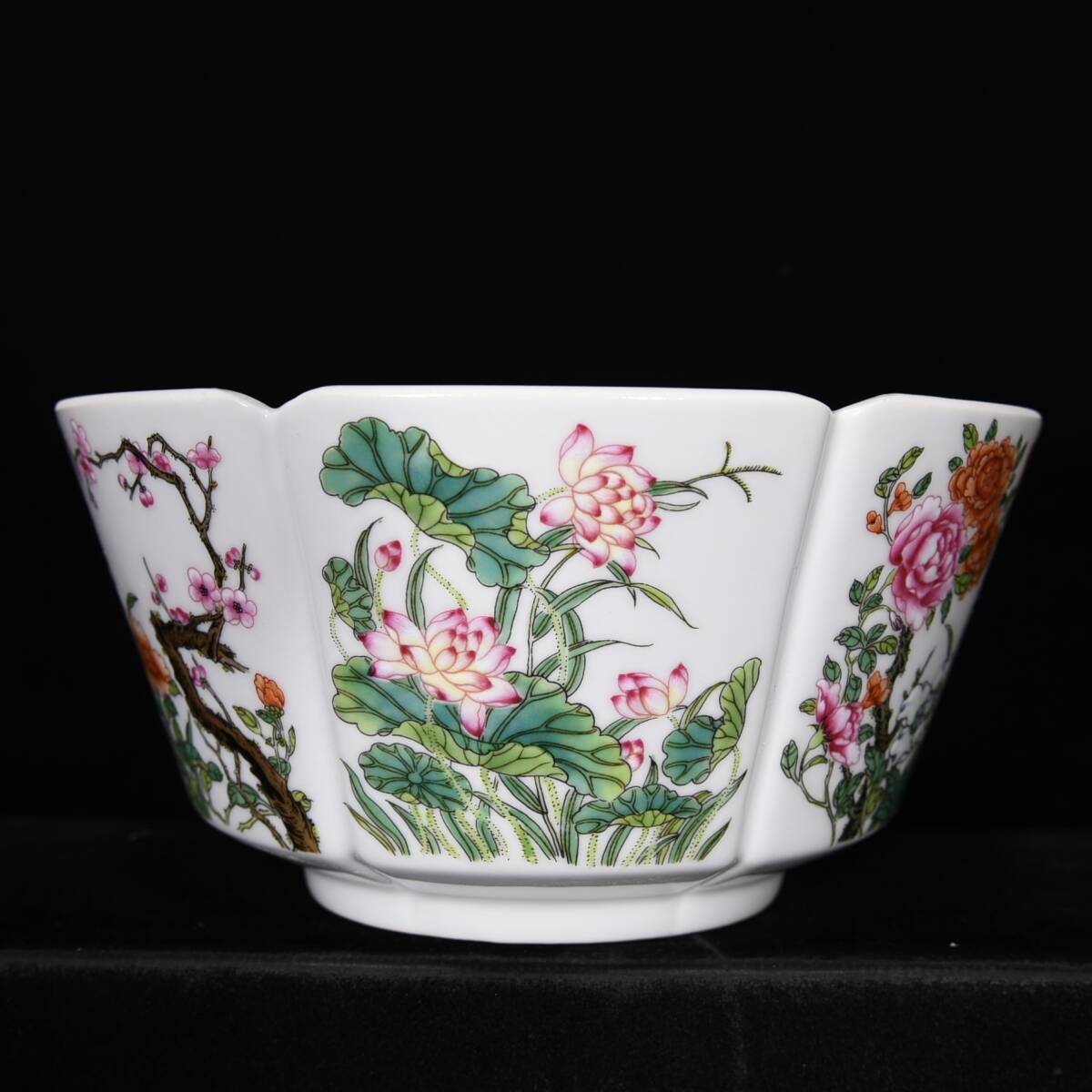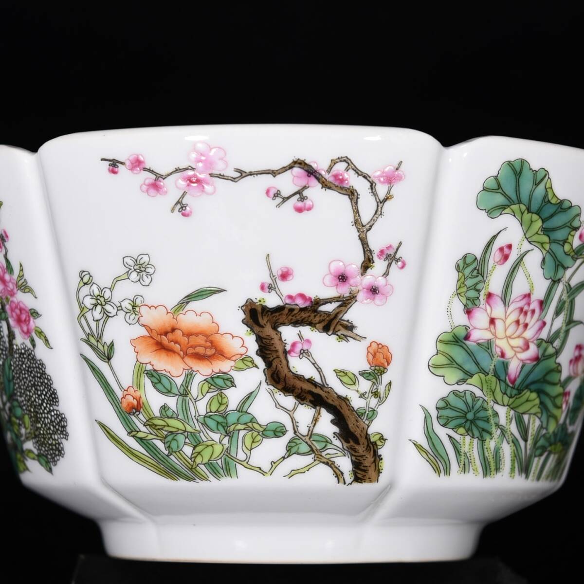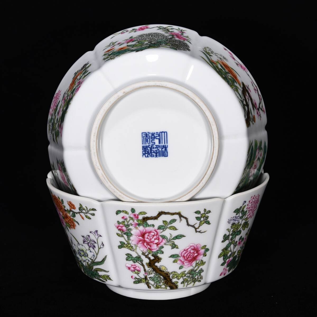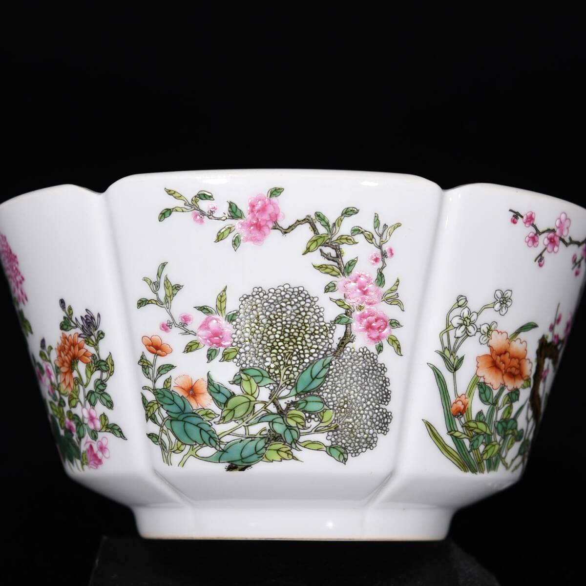 > ◆珍蔵◆中国古美術 大清乾隆年製款 粉彩 古陶磁 花卉紋六方碗 ―對 美品 細密細工造 置物 擺件 古賞物 骨董 時代物 A06