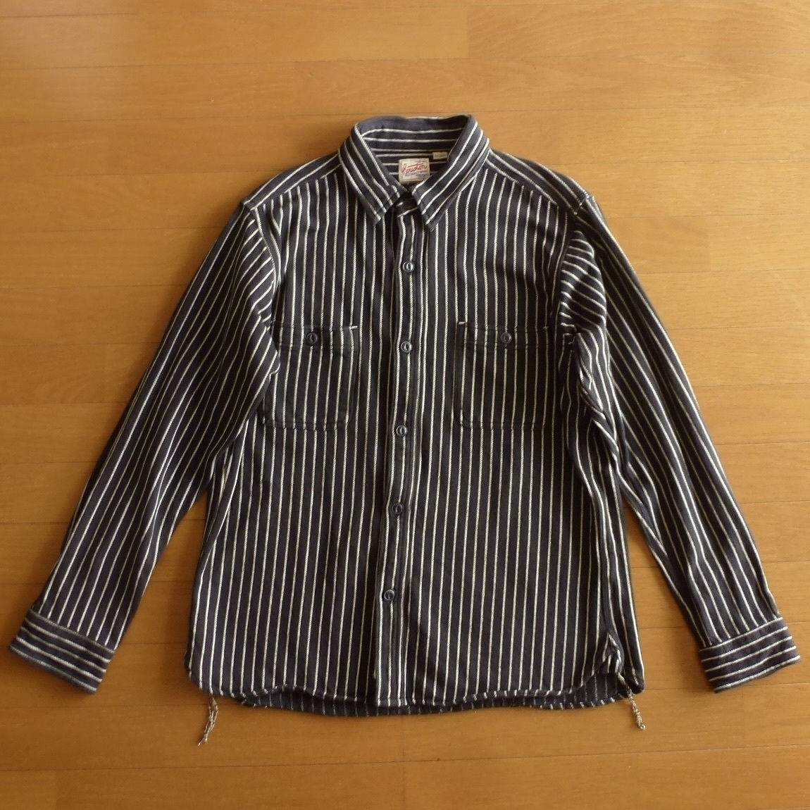 - HOUSTON ヒューストン 長袖 ビエラシャツ ストライプ フランネルシャツ 黒/白 肉厚 即決あり!