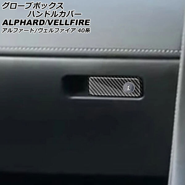 - グローブボックスハンドルカバー トヨタ アルファード/ヴェルファイア 40系 2023年06月~ ブラックカーボン ABS製 Bタイプ 鍵穴有り
