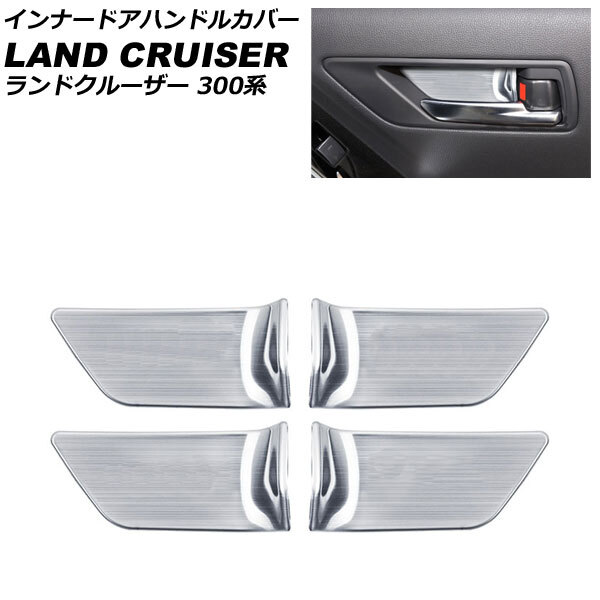 - インナードアハンドルカバー トヨタ ランドクルーザー FJA300W/VJA300W シートメモリー機能搭載車不可 シルバー ステンレス製 ヘアライン…