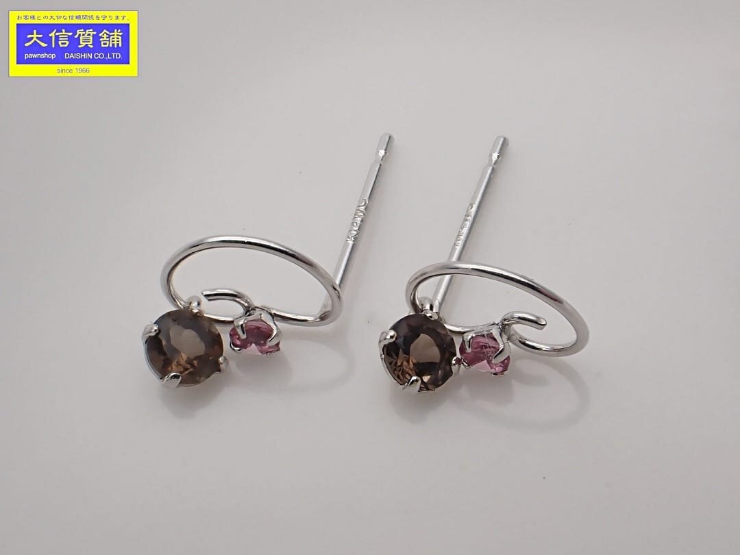> K14WG ホワイトゴールド ピンク ブラウン クォーツ ピアス 0.34g キャッチ無し 中古A- 【送料無料】 C-9526