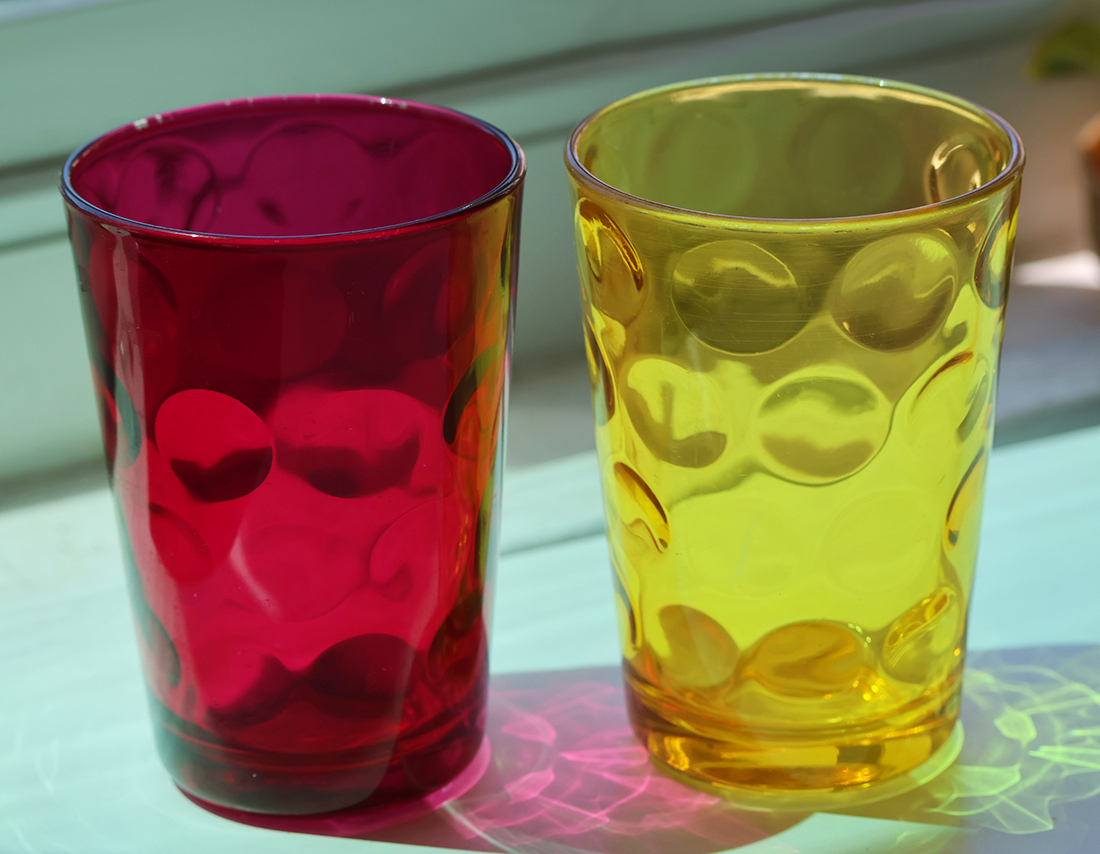 - LGライト コインドット クランベリー イエロー タンブラー ジュースグラス 2個セット 酒 ビンテージ アメリカ