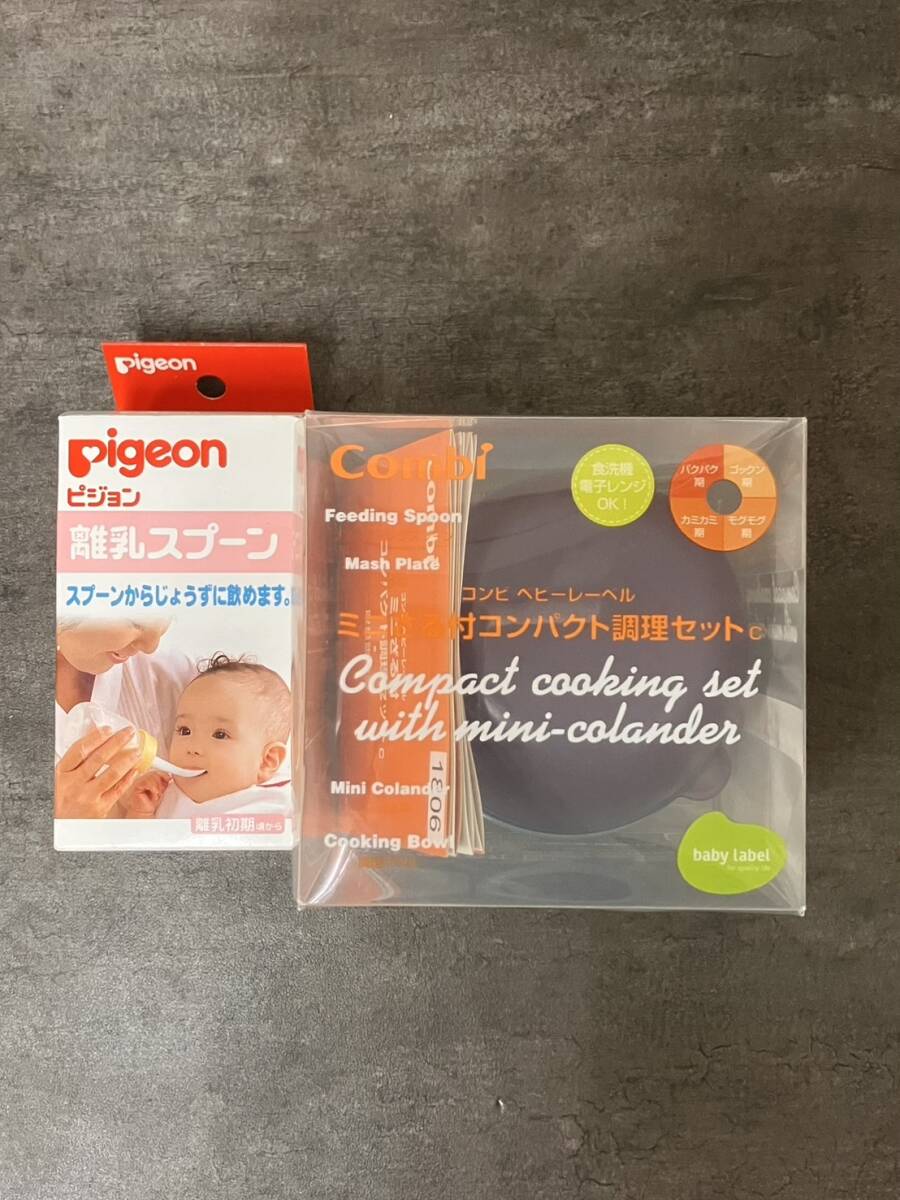 - Pigeon/ピジョン 離乳スプーン Combi/コンビ ベビーレーベル ミニざる付コンパクト調理セット 未使用品 自宅保管品 現状お渡し