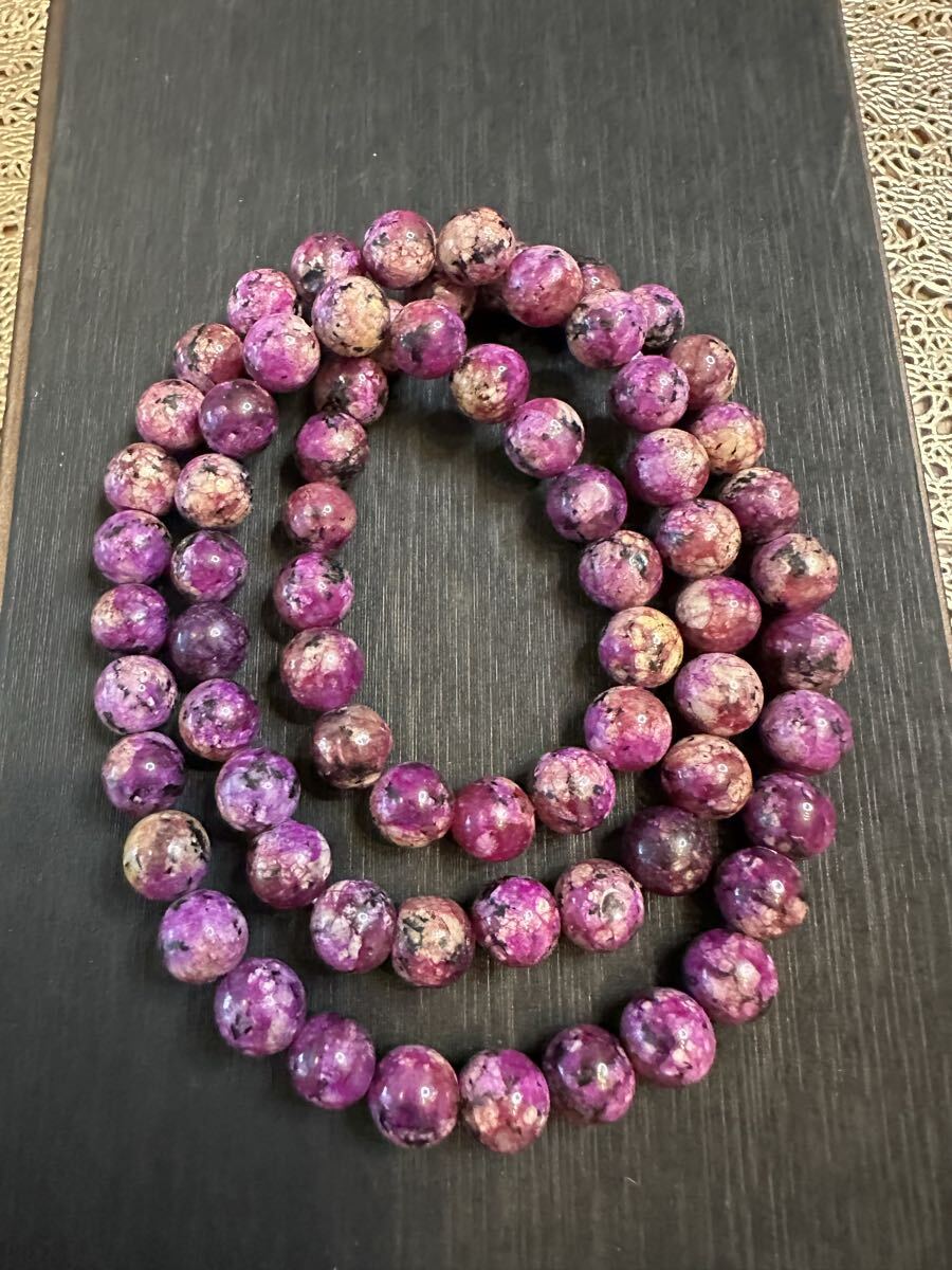 - Z-741-1 天然石 斑銅鉱 ネックレス 3連ブレスレット 8mm