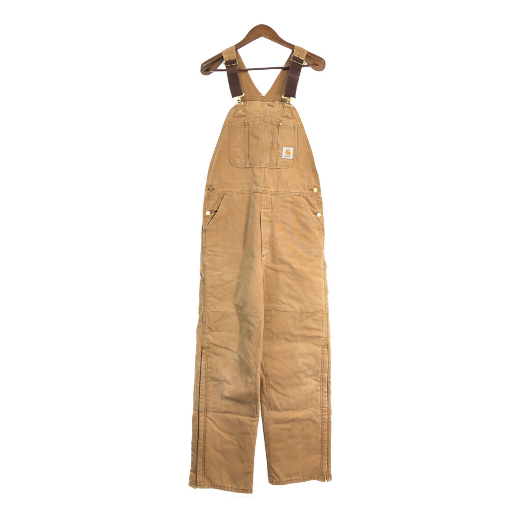> 90年代 USA製 Carhartt カーハート ダック ダブルニー ビブオーバーオール ベージュ (メンズ W36 L34) 中古 古着 R7926