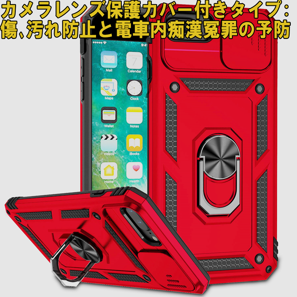 - G 赤 iPhone8 Plus iPhone7 Plus ケース カバー 指リング 画面 保護 アイフォン 米軍 衝撃 頑丈 スタンド ホルダー Apple 最強 アップル