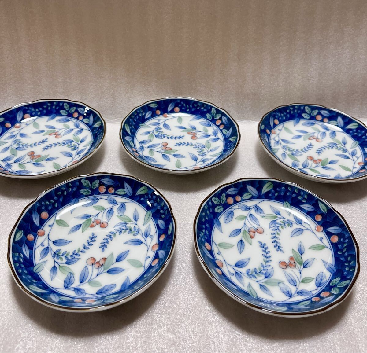 - 未使用 有田焼 雪峰窯 銘々皿 5客 5枚 小皿 丸皿 絵皿 色絵 セット まとめ売り 可愛い 取り皿