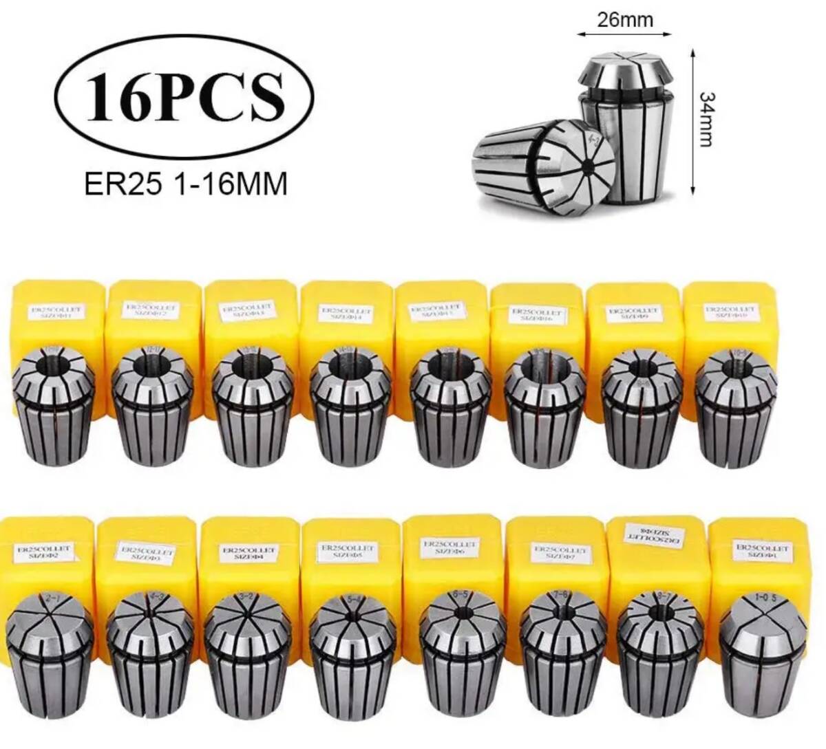 > ER25 コレット CNC フライス 旋盤 1~16mm 計16個セット