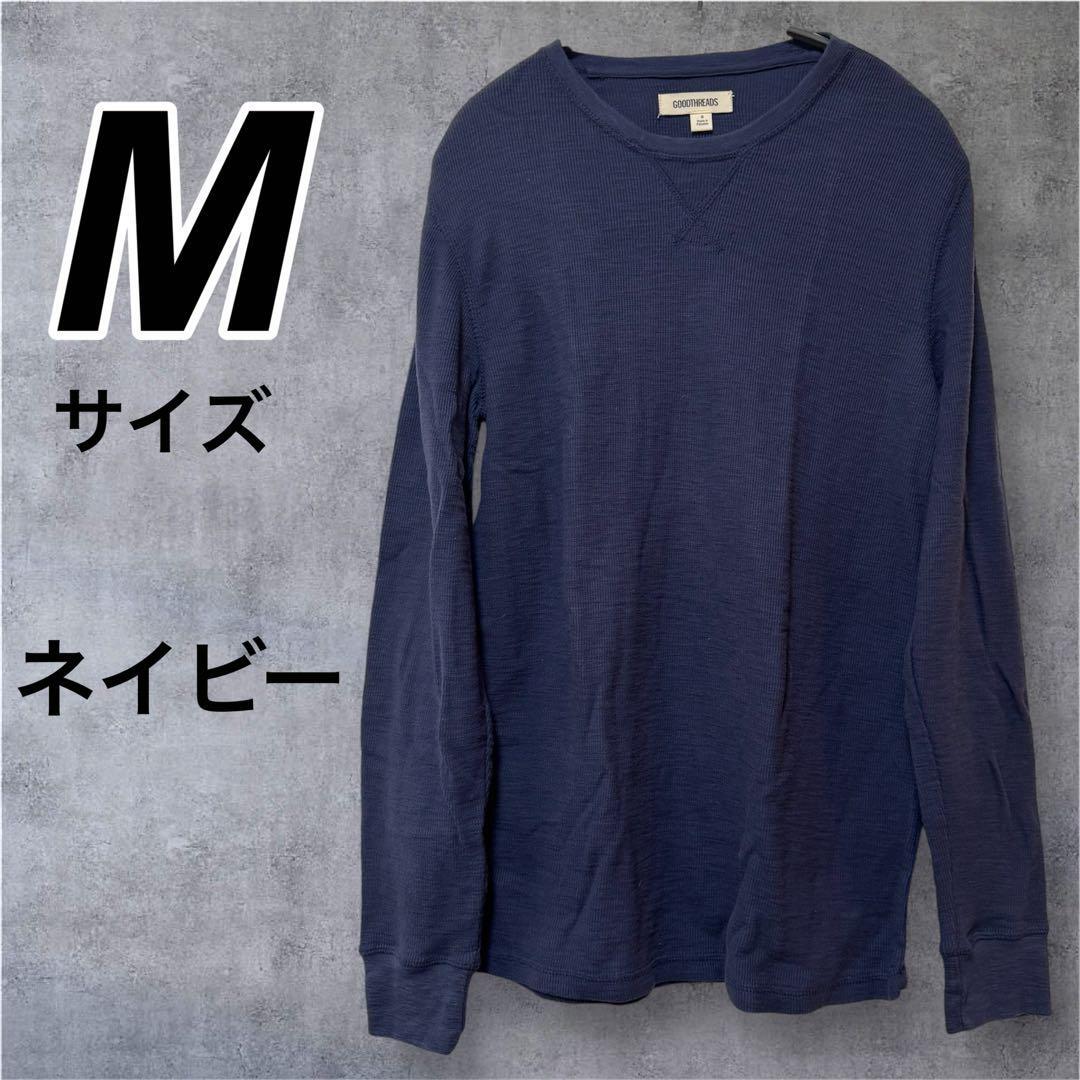 - クルーネックシャツ 長袖 ロンT Mサイズ ネイビー 綿100% メンズ 丸襟