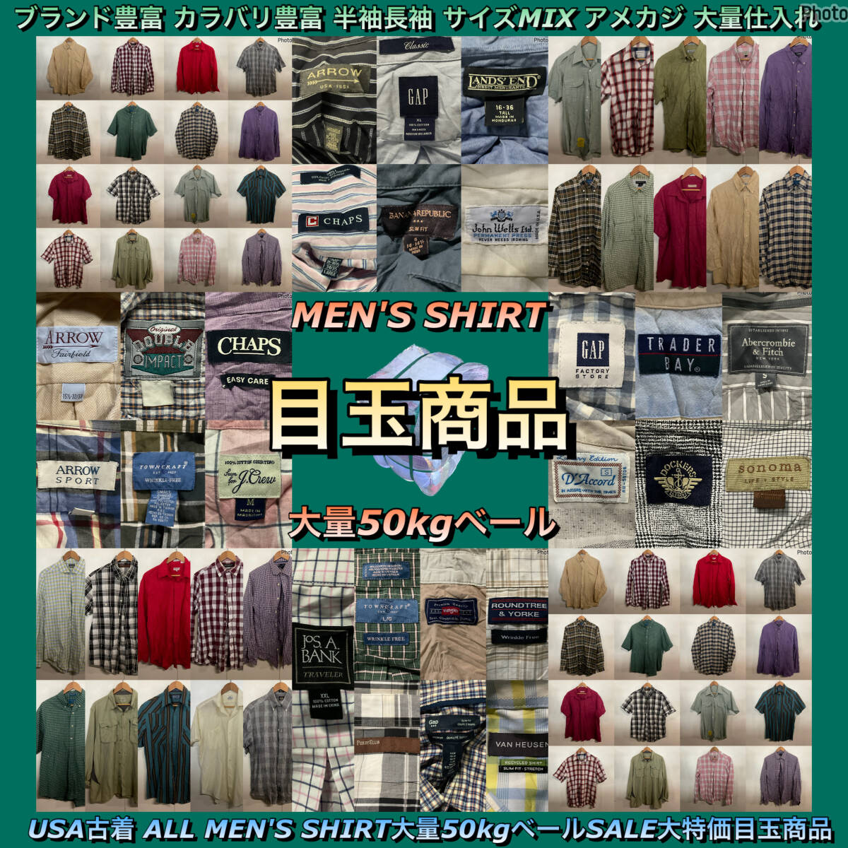 - 【T1384】★オススメ★ アメリカ古着卸オススメALL MEN'S SHIRT大人気大量50kgベール 半袖長袖ブランド豊富 カラバリ豊富 サイズMIX
