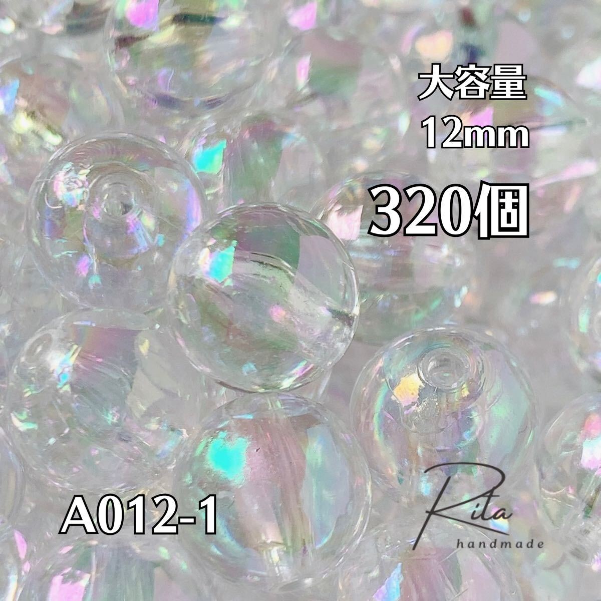 - 【大容量320個】クリア アクリルクリアビーズ オーロラ加工 12mm 両穴 ハンドメイド アクセサリーパーツ