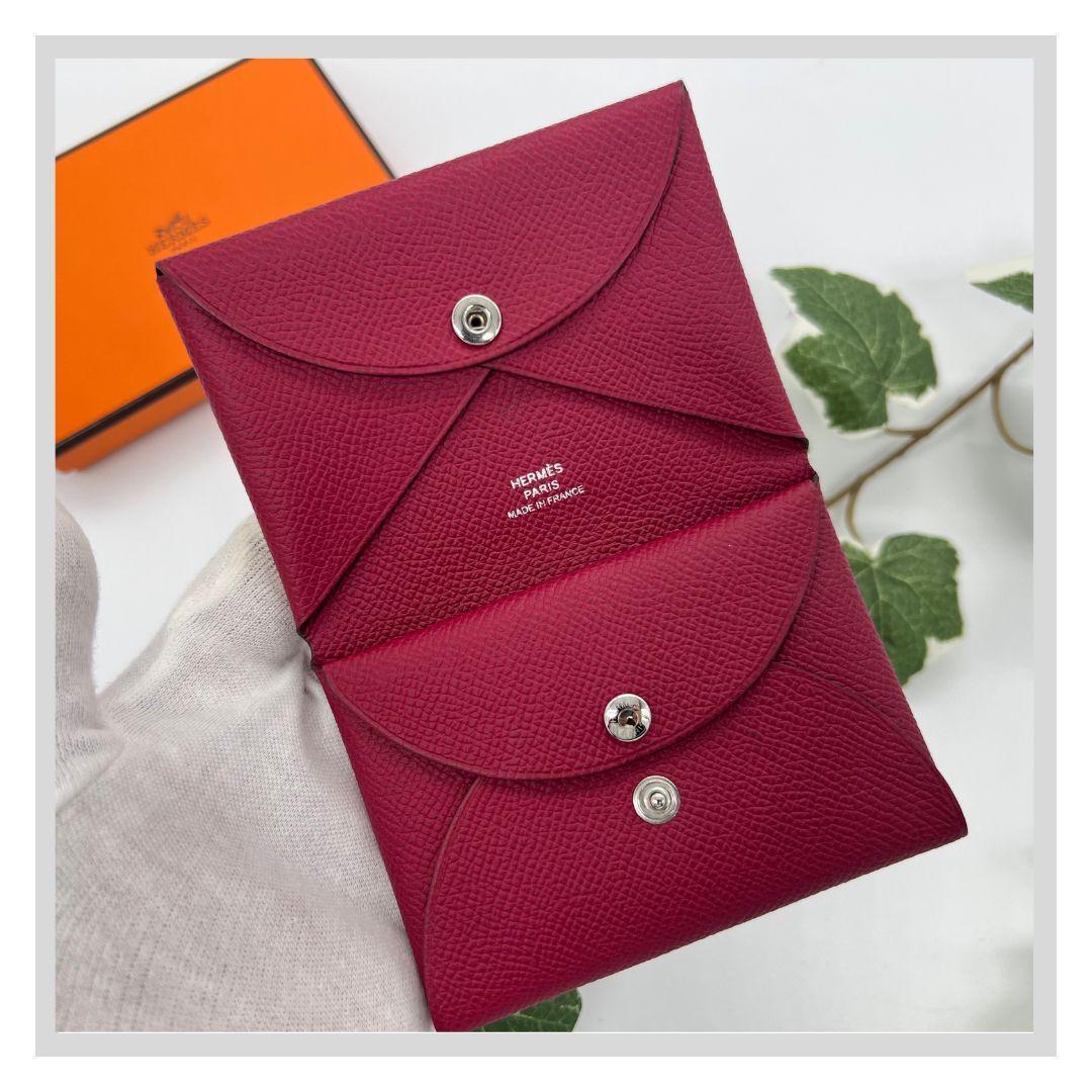 - エルメス カルヴィ デュオ カードケース コインケース ボルドー系 レザー