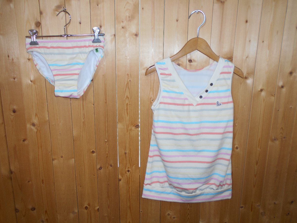 > ◆PIKO セパレート水着◆ピコ サイズM レディース ボーダー マルチカラー 523301-S クリーニング済 ゆうパケット