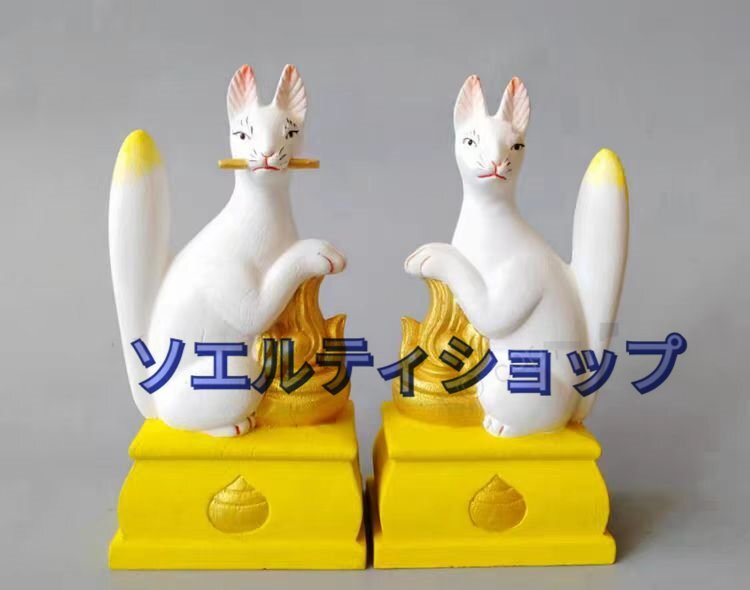 - 狐 一対 木製 きつね 稲荷大明神 お稲荷さん お稲荷様 稲荷神 神具高さ約14cm 置物