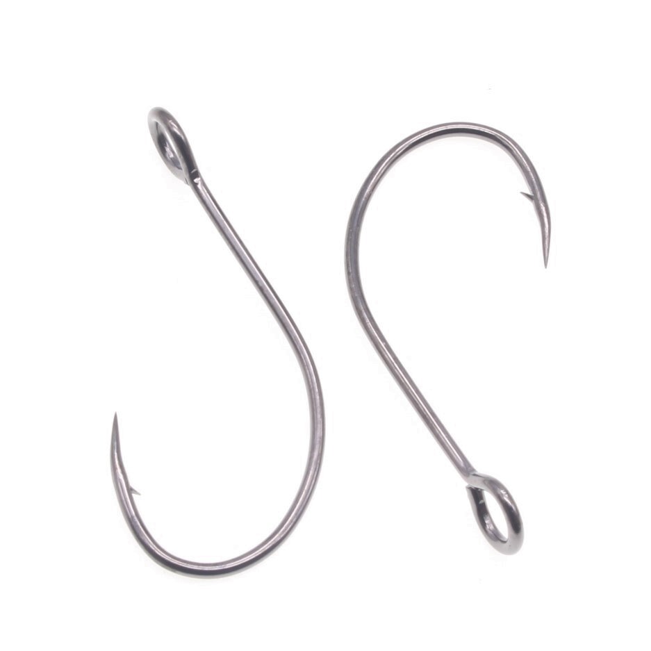 - 【送料150円】高炭素鋼 スプーン用 シングルフック #2 20本セット マイクロバーブ 細軸仕様 横アイ ビッグアイ 渓流釣り 管釣り