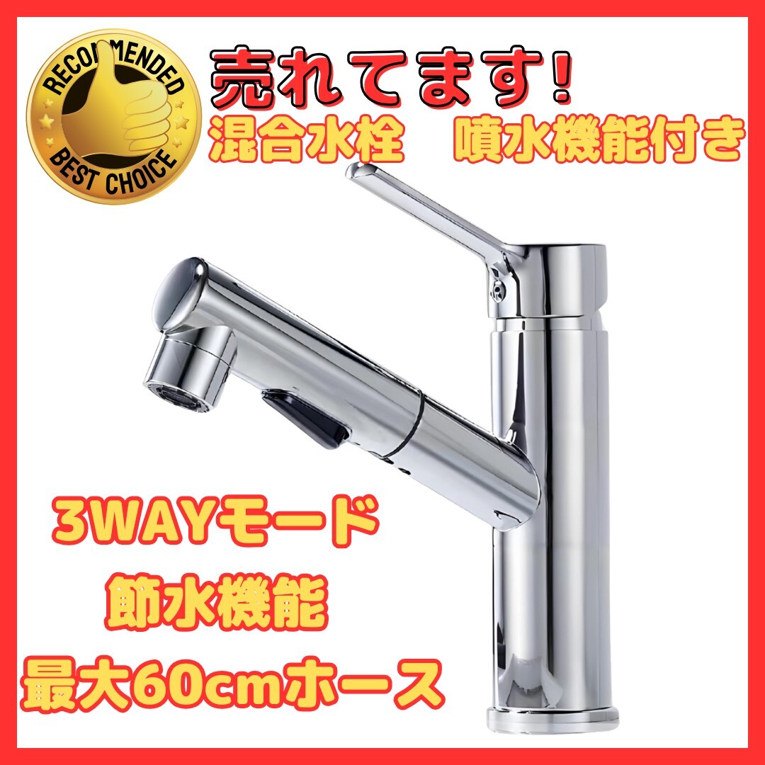 - A 洗面蛇口 噴水機能付き シルバー シングルレバー 混合栓 キッチン用水栓 引出し式