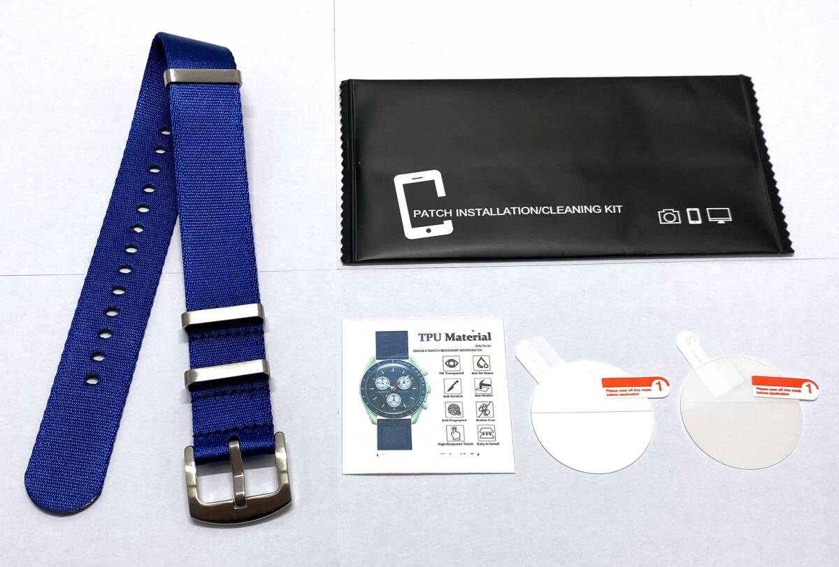 - 【未使用・修理部品】OMEGA X Swatch オメガ スウォッチ 対応 保護フィルム ナトーベルト セット おまけ-フィルム+1枚/バネ棒2本 / BY-1119