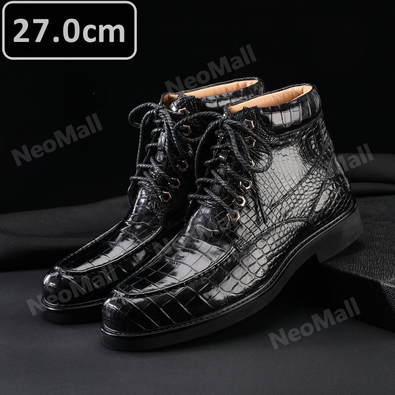 - 人気のクロコダイルレザー 超貴重 最高級 天然ワニ革 クロコダイル 靴 メンズシューズ 革靴 ブラック 27.0cm 【114】