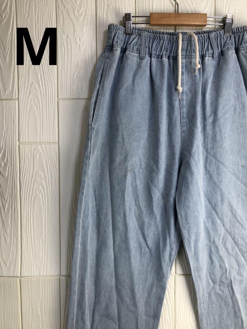 - ライトブルーデニムパンツ ウエストゴム紐付76cm Mサイズ