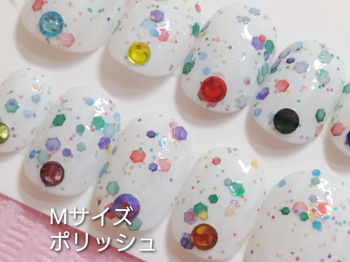 - Mサイズベリーショート・カラフルホログラム入りホワイトカラーポイントストーンマルチカラー