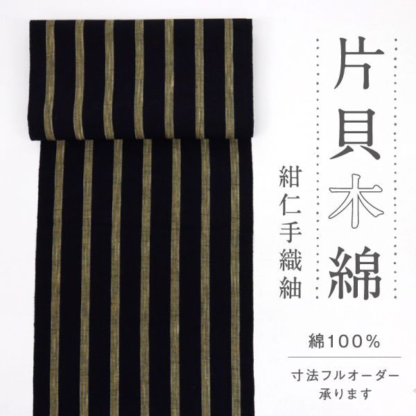 - 【反物】 片貝木綿 『紺仁手織紬』 藍染 紺仁工房 縞 濃紺 着物 お仕立て可 反25-75