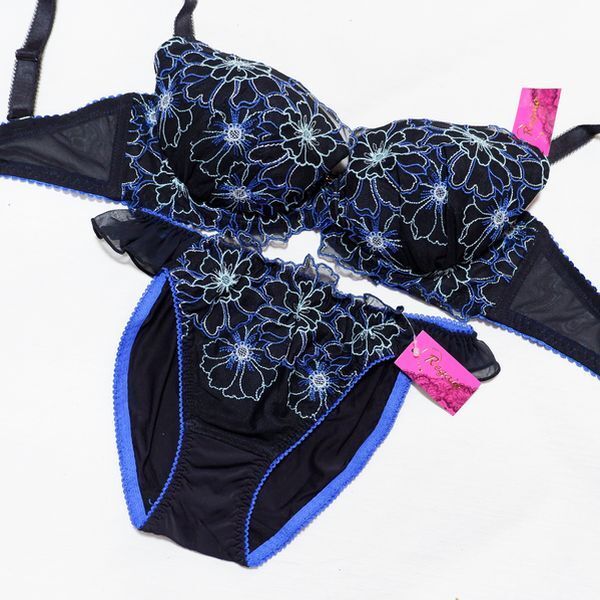 - Last プレジャージーン C70M 寄せ上谷間 お華刺繍 きらきらビジュー付 ブラ&ショーツ 黒