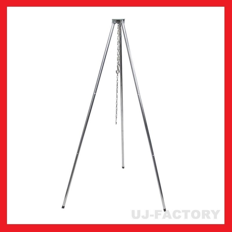 > ★ONOE ハンディトライポッド(HT-141-B)3脚スタンド★丈夫な鉄製 スチール/クロームメッキ アウトドア料理の醍醐味!吊り下げクッキング♪
