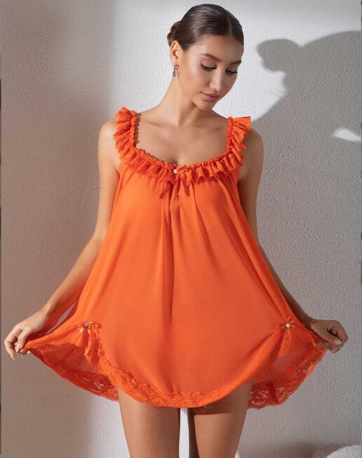 - M0808 ワンピースレディース● 20代30代40代 着心地抜群 ●高品質 sexy パジャマ オレンジ