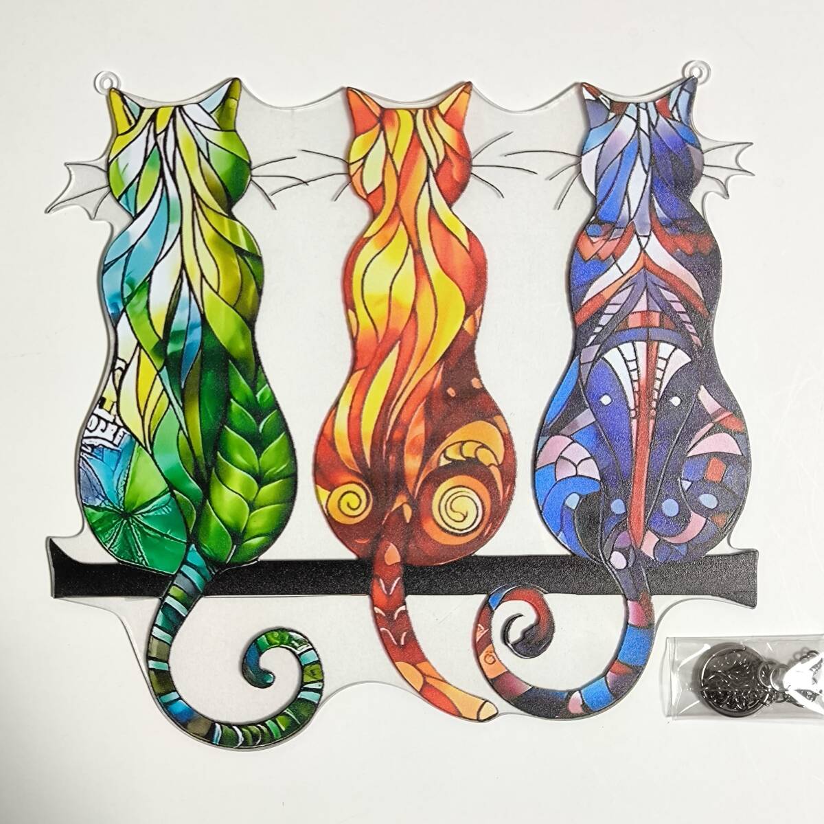 - 【カラフルな3匹の猫】アクリルプレート 飾り サンキャッチャー チェーン付き オブジェ お洒落 壁や窓辺の飾りに◎
