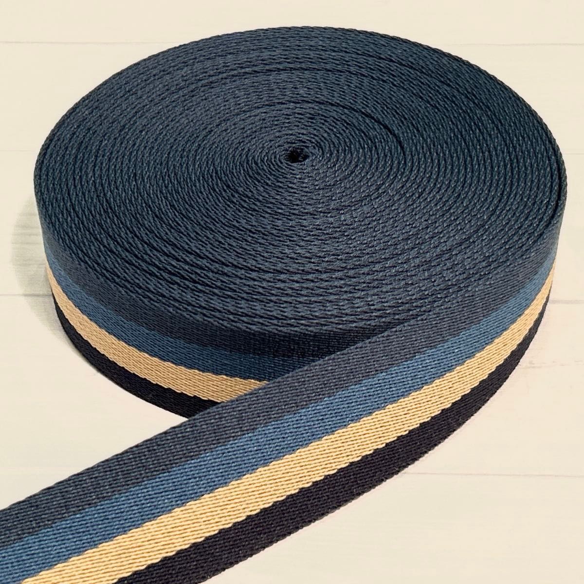 - 【長さ約5m】ポリエステル バッグ紐 ブルーストライプ柄 幅3.8cm バッグ用紐 ハンドメイド 輸入 手芸