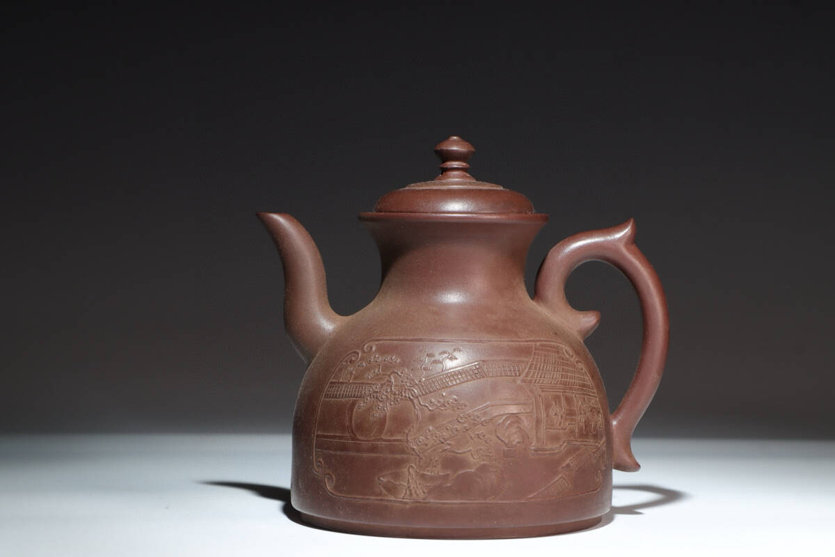 > 『古』【底款・御題詩文 汪寅仙配蓋】重量387g 朱泥 段泥 煎茶道具 急須 単孔口 唐物 孟臣 紫砂壺 紫砂壷 茶壷 茶壷 明代/清代