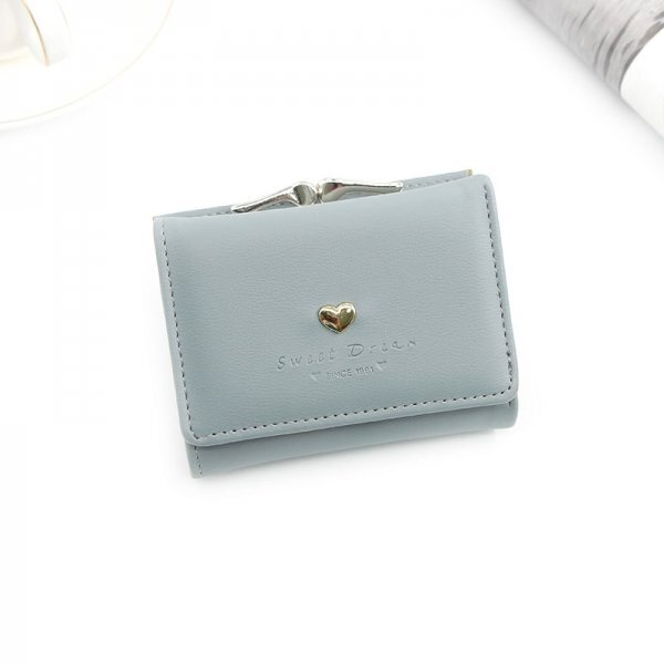 - ミニ財布 レディース 三つ折り がま口 ブルーグレー 青 灰 小銭入れ 新品 かわいい コンパクト お札折らない カード入る ミニウォレット