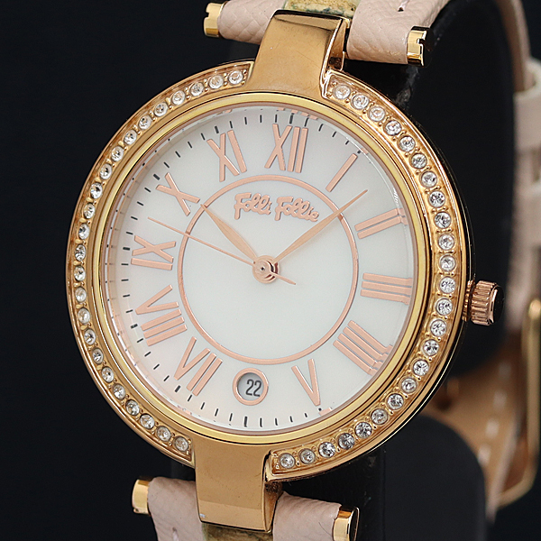 > 稼動 良品 フォリフォリ QZ シェル文字盤 ダイヤベゼル デイト WF17B025BD レディース腕時計 OGH 2000000 NSK