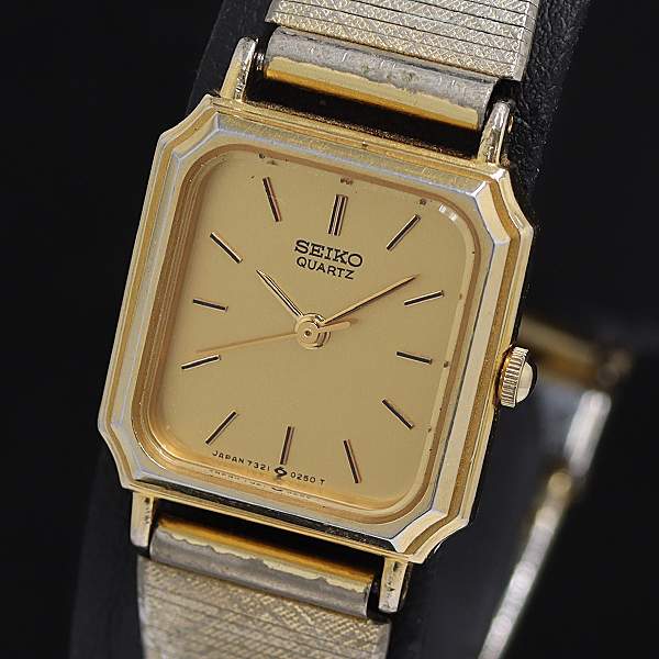 - 稼働 良品 セイコー 7321-510E QZ ゴールド文字盤 レディース腕時計 2000000 NSK SRR