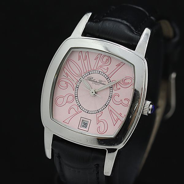 - 稼動 ロベルタヴィヴィアーニ QZ ピンク文字盤 デイト シルバー メンズ腕時計 2000000 NSK OMI
