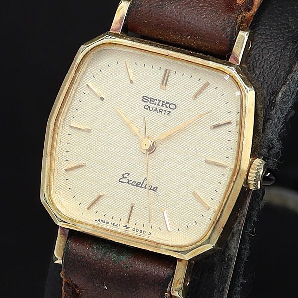 - 稼働 良品 セイコー エクセリーヌ 12210-5010 QZ ゴールド文字盤 オクタゴン レディース腕時計 OSW 2000000 NSK