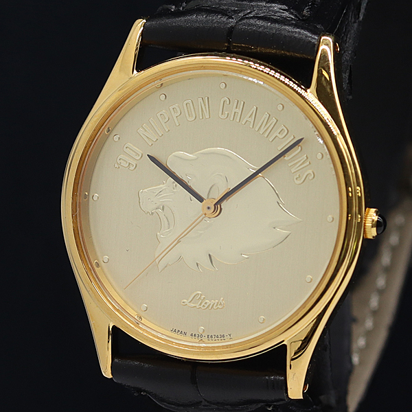 > 保/箱付 稼働 良品 シチズン 西武ライオンズ 90年 優勝記念 4630-E60442 QZ ゴールド文字盤 メンズ腕時計 2000000 NSK SMZ