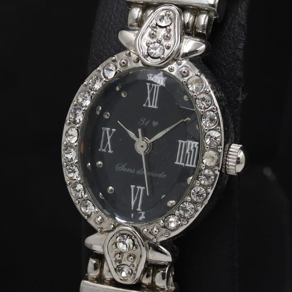 > 稼働 トランテアンソンドゥモード ストーンベゼル オーバル QZ ブラック文字盤 レディース腕時計 TKD 2000000 NSK