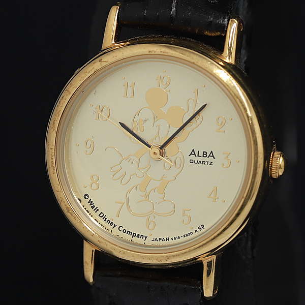 - 稼働 セイコー アルバ QZ ミッキーマウス ゴールド文字盤 V515-6420 レディース腕時計 OGH 2000000 NSK