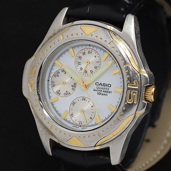 - 稼動 カシオ MTD-1046 QZ クロノグラフ シルバー文字盤 メンズ腕時計 AOY 2000000 NSK