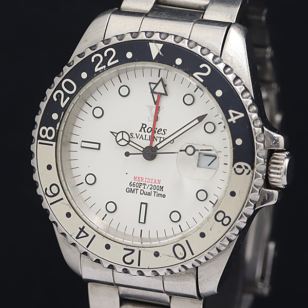 - 稼動 Roses ステファノバレンチノ RS003 QZ デイト シルバー文字盤 GMT メンズ腕時計 OGH 2000000 NSK